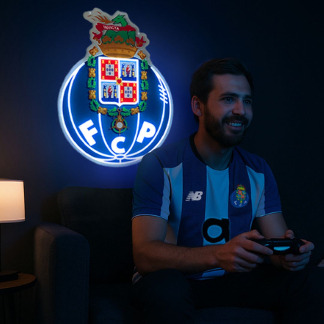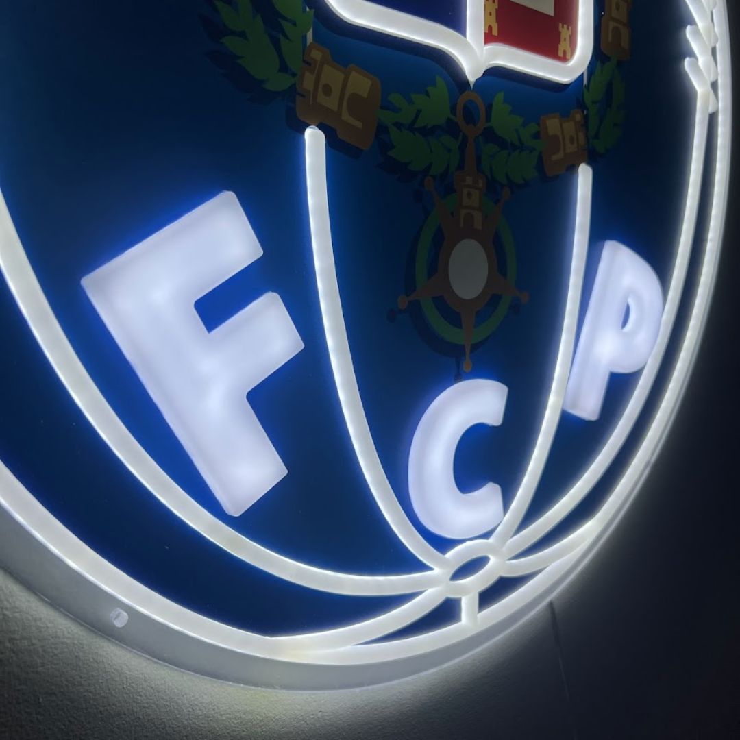 Enseigne néon LED avec emblème du FC Porto – Lettres 3D à pousser et faux néon sans couture