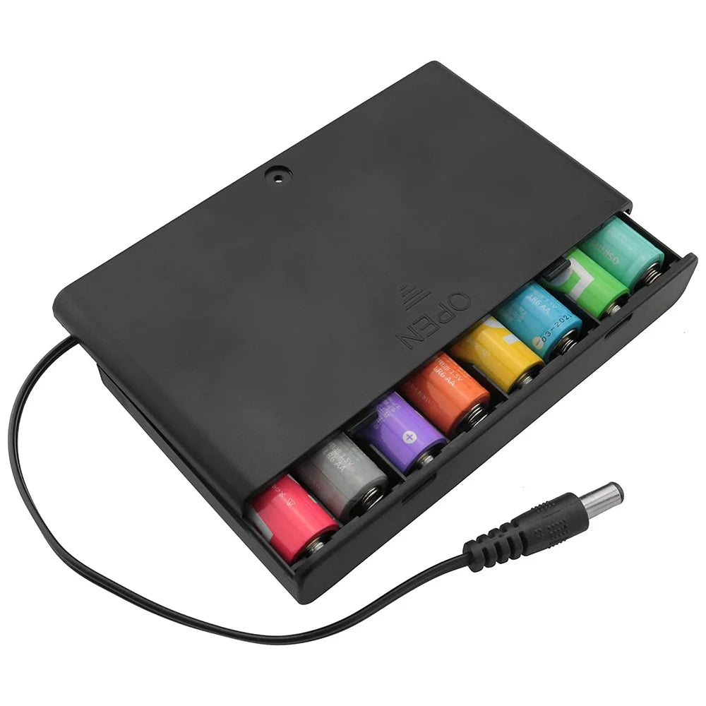 • 🔋 Holds 8 x AA batteries (1.5V each) for 12V total output