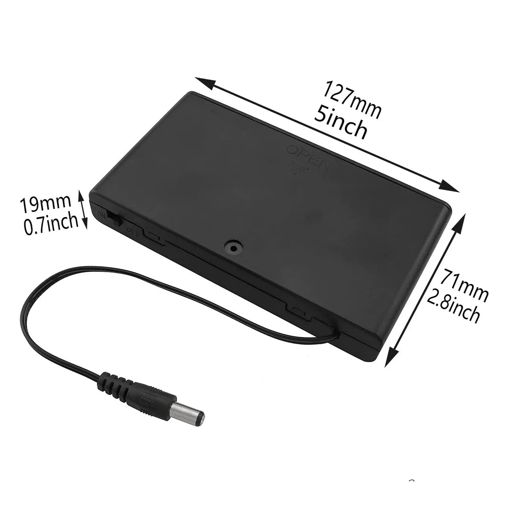Power your low-voltage devices the reliable way with this 8 x AA Battery Holder Box featuring a built-in ON/OFF switch, 5.5 x 2.1mm DC plug, and secure plastic cover. Designed for 12V output using 8 standard 1.5V AA batteries, this compact and durable battery case is ideal for DIY electronics, LED strip lighting, model toys, Arduino projects, and more.
