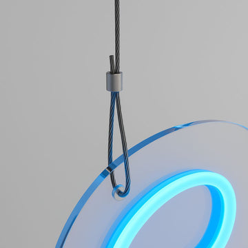 Attach the provided cables through the sign’s pre-drilled holes. Secure the cables to your desired hanging surface (e.g., ceiling), ensuring stability and proper alignment.