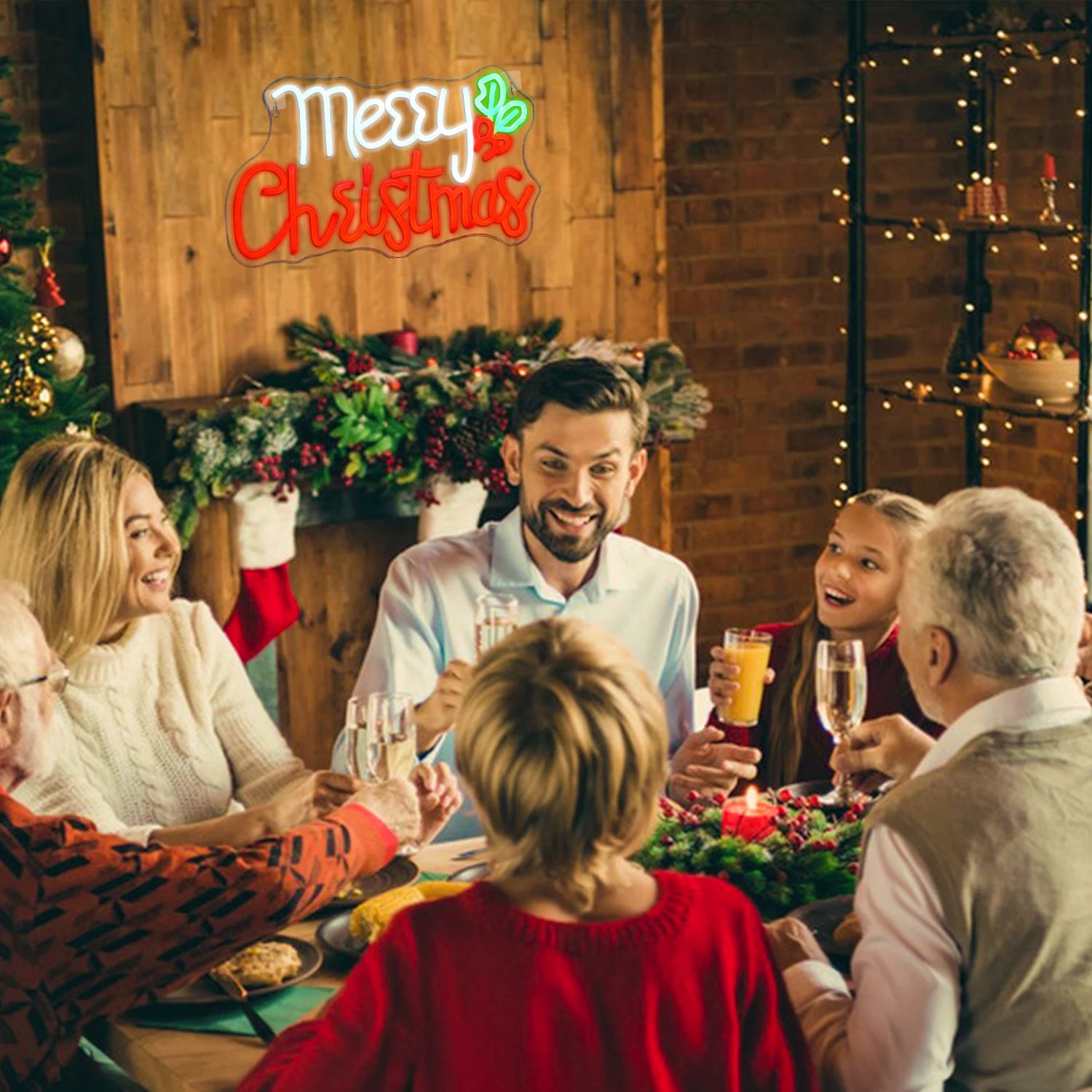 Merry Christmas LED Neon Sign (USB-Powered, Dimmable, 42cm x 25cm)